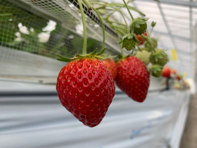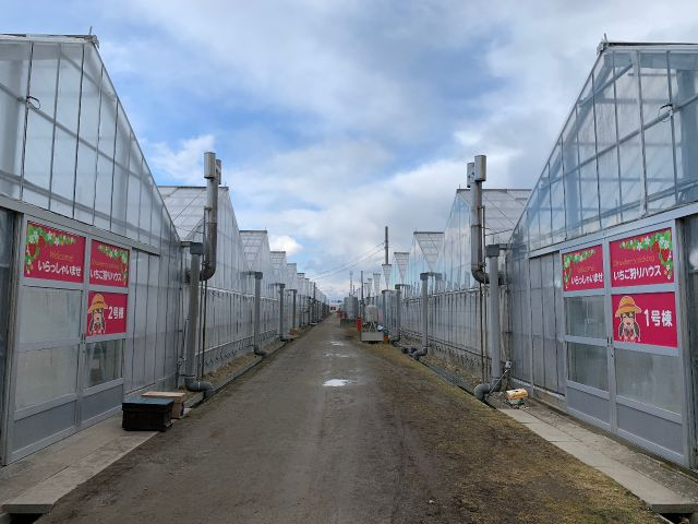 この土地で、総面積3万2千平方メートルの敷地にいちご23万本を育てています*