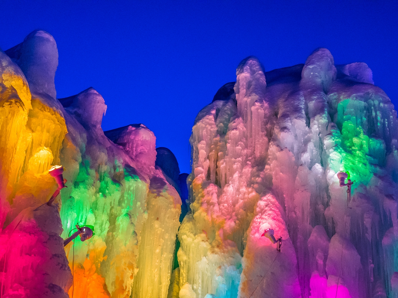 色とりどりのライトに照らされた氷のオブジェは幻想的!
