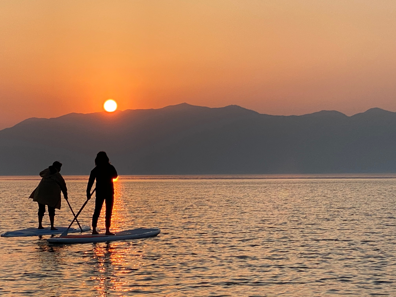 琵琶湖八景の一つ、雄松崎で夕焼けSUP体験♪