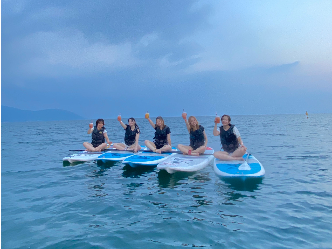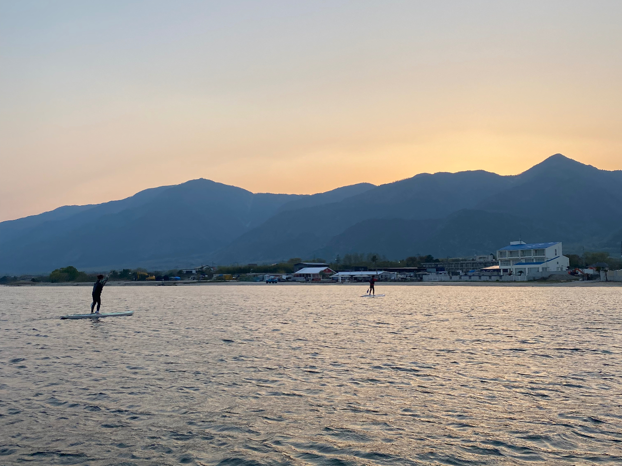 白い砂浜、透き通る水で有名な近江舞子南浜での体験&サンセットクルージングプランです。サップ・SUP(スタンドアップパドル)