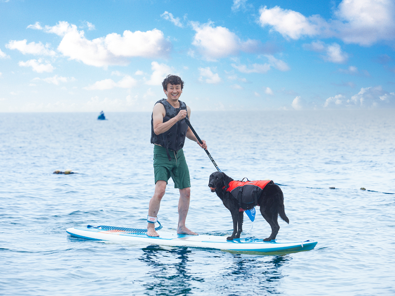 SUPボード・パドル・ライフジャケット・リーシュコード、陸上講習、ガイド料、わんちゃん参加費(一頭)