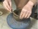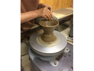 電動ロクロの上に粘土をのせ、回転させながら作っていきます。