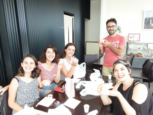 ◎餡を重ね丸めながら境目をぼかしたり、道具で花の表情を作ったり、わいわい楽しく体験しました。