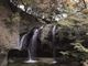 大生瀬川から見た「月待の滝」高さ17m幅12m三筋の親子滝に