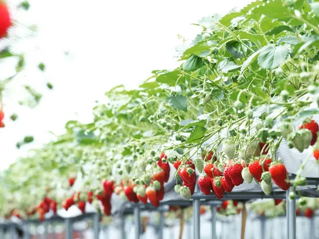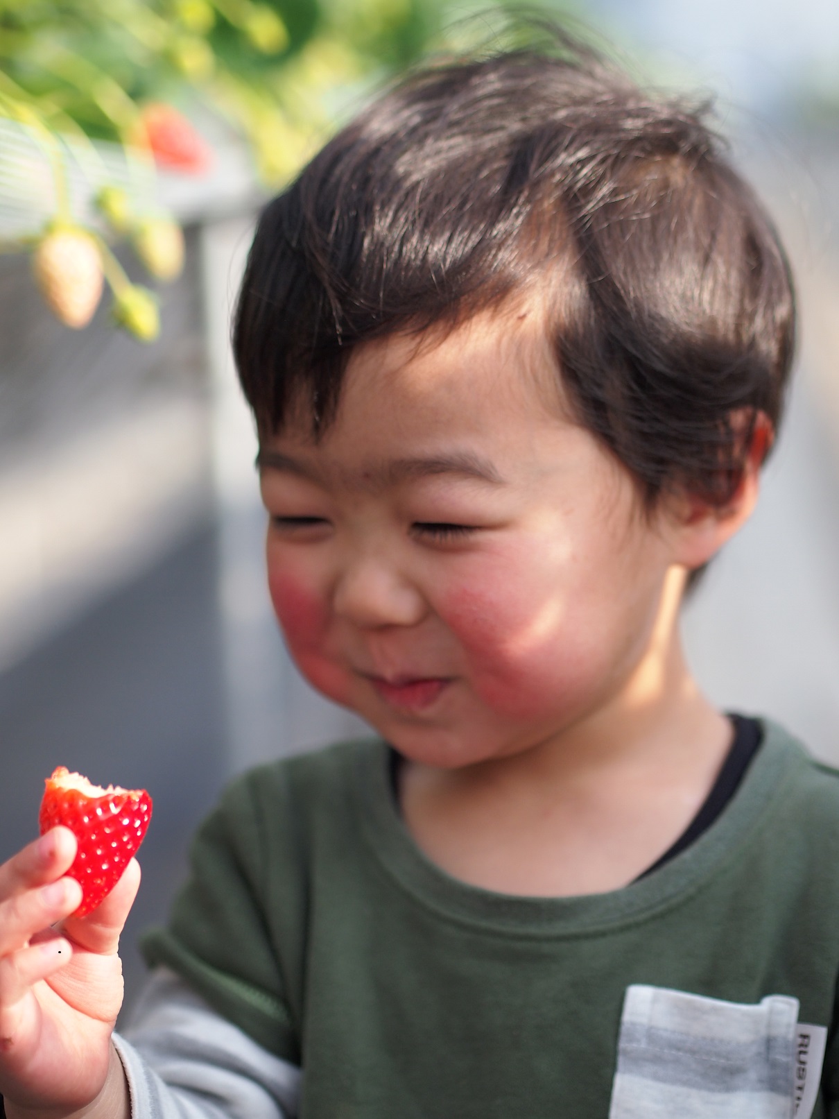 いちごが空中に浮いているので腰をかがめる事なく、もぎ取って食べることができます。