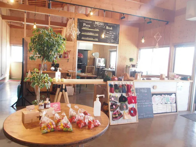 農園併設のカフェ(土日祝のみ営業)では、手作りピザやドリンクなどの販売もございます!