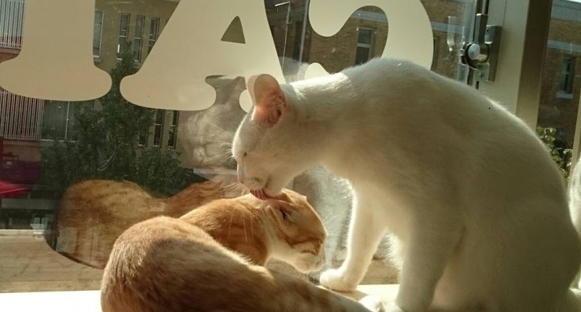 以前から気になっていましたが、御所を訪れた際思いきってぶらっと寄ってみました。店内は広くはなかったですが、窓が大きいせいか圧迫感がなく、窓際でにゃんこちゃんたちが気持ち良さそうに日向ぼっこしていました。どの子もみんなつやつやで、普段から可愛がられているのが伝わってきます。店員さんからちゅーるをいただいたのですが、それを見た途端にゃんこちゃんたちが寄ってきて。。。とにかく、めちゃくちゃ可愛かったです。膝にもいっぱい乗って来てくれましたよ。