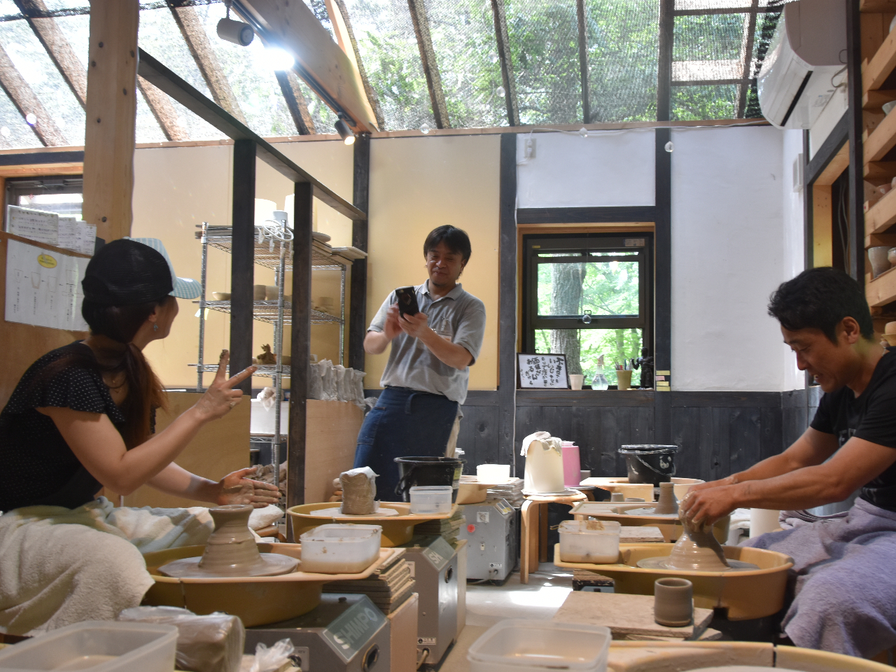 ◎最初の1個は先生や他の体験者と一緒にお湯のみ作りで小手調べ・2個目から自由制制作♪