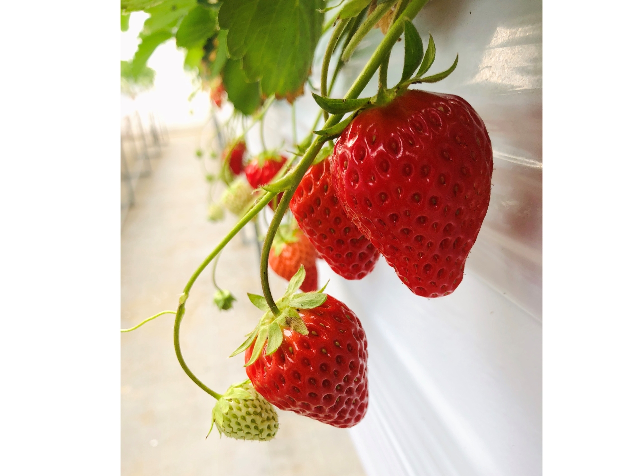 高設栽培で楽々いちご狩りを楽しめます♪いちご狩り