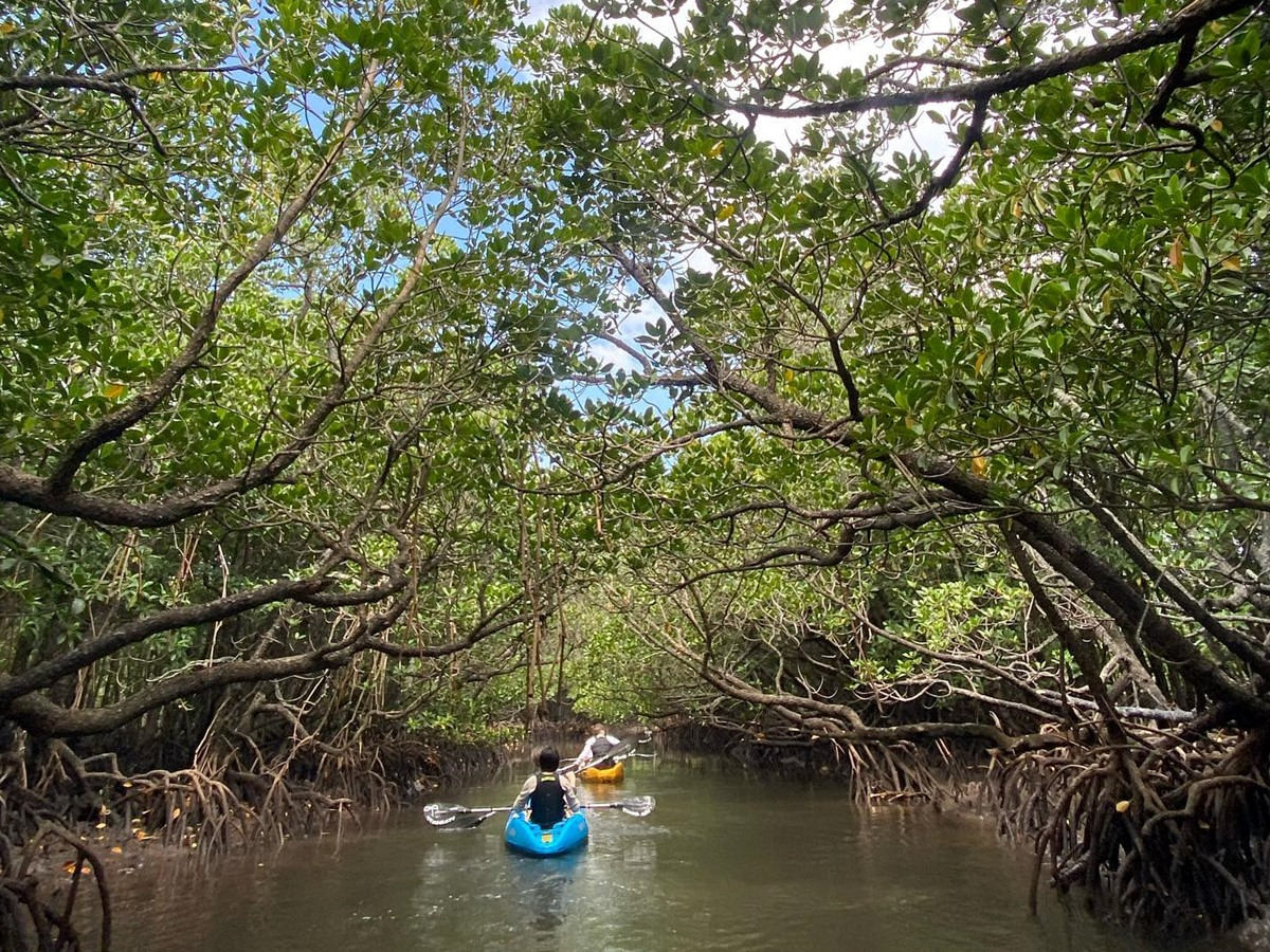 石垣島で少人数制のマングローブカヤックツアーを実施してます。石垣島最大級のマングローブ林がある野底(のそこ)エリアの吹通川をご案内中です。