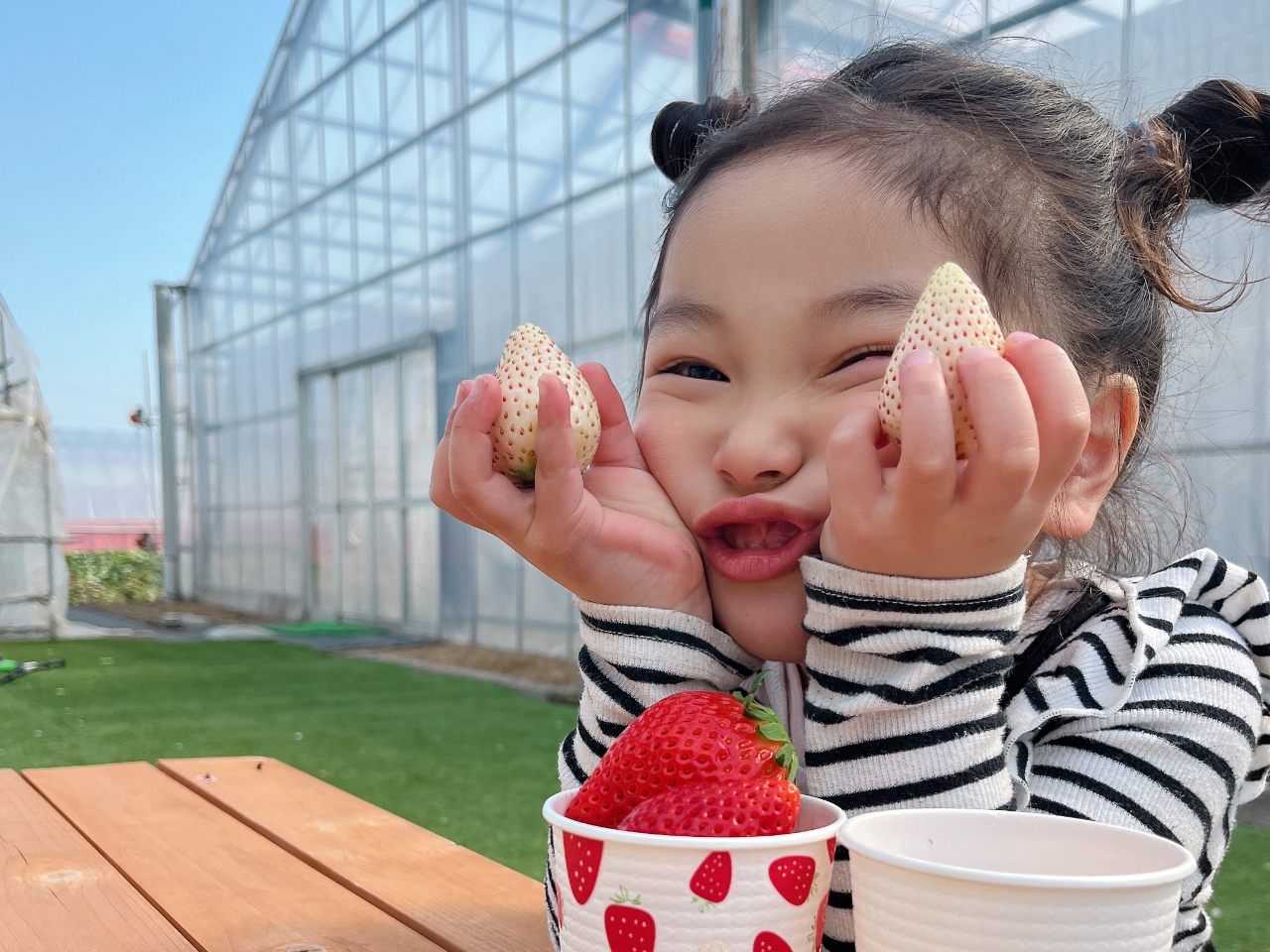 大きなスカイベリーと白いミルキーベリー、スカイベリーに負けないくらいの大きなとちおとめ、どれを食べても甘くて美味しかったです。