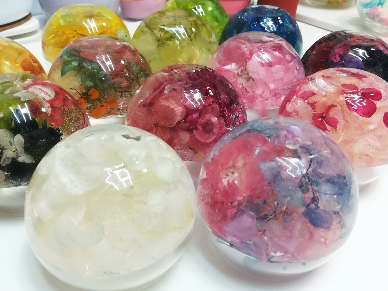 まずは、1層目に入れるお花選んでグラスに入れ、クリアなジェルワックスを注ぎ、冷やします。