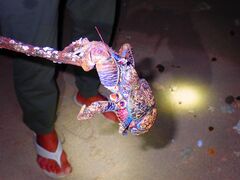 夜にビーチまで移動して、満天の星空と小ぶりながらも力強いヤシガニを見ることが出来ました。ビーチと言っても秘密の場所のようで自動車を止めてからビーチまでの移動は悪道を慎重に歩きます。ビーチ沿いのジャングルとでも申しましょうか。ペンライトを片手に生物を探しますが、12月ということもあってなかなか見つかりません。写真のヤシガニはスタッフの方が捕獲して見せて下さいました。星空はこの時期では奇跡的と言うほど美しかったようで星が近くに感じました。夜の時間帯も石垣島を満喫したいならこのツアーはお勧めです。pipiさんに要望を1つ。滑って転ぶリスクを減らすため、ペンライトには紐を通して首にかけれるようにした方が良いかも知れません。