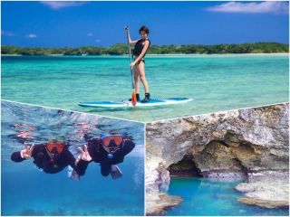 石垣を代表する景勝地「川平湾」でのSUPまたはカヌークルージングと人気シュノーケリングスポット「青の洞窟」でのシュノーケリングがパックになったお得なツアー!