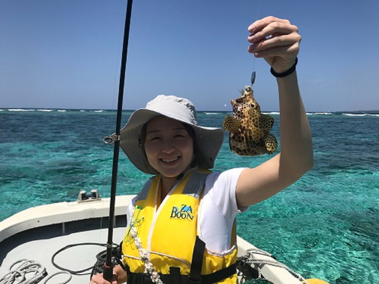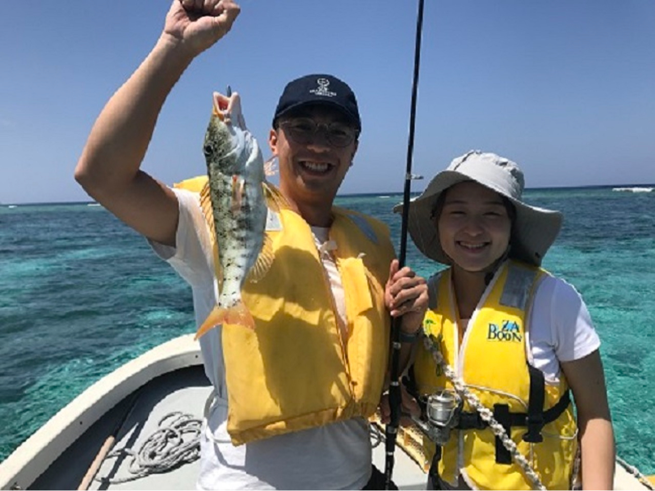 ♪ 船に弱いゲストさんは、揺れの少ない透きとおるエメラルド色の浅場釣りの開催も大丈夫です。(以外に魚は浅場の岩場やサンゴ礁に潜んでいます)