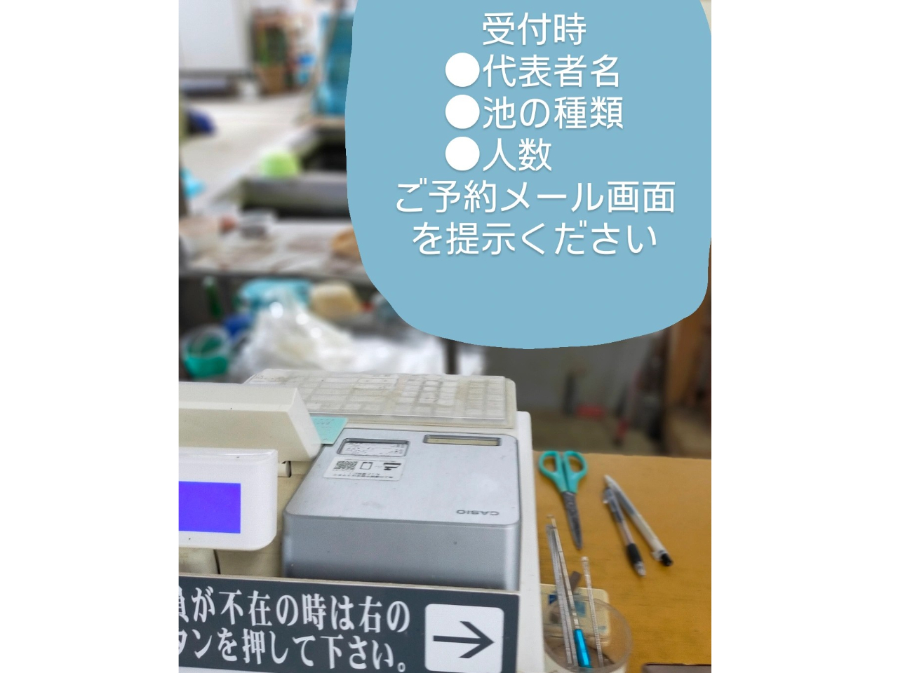 受付【じゃらんで予約した旨と予約を取られた代表者様のお名前をお申し付け下さい】