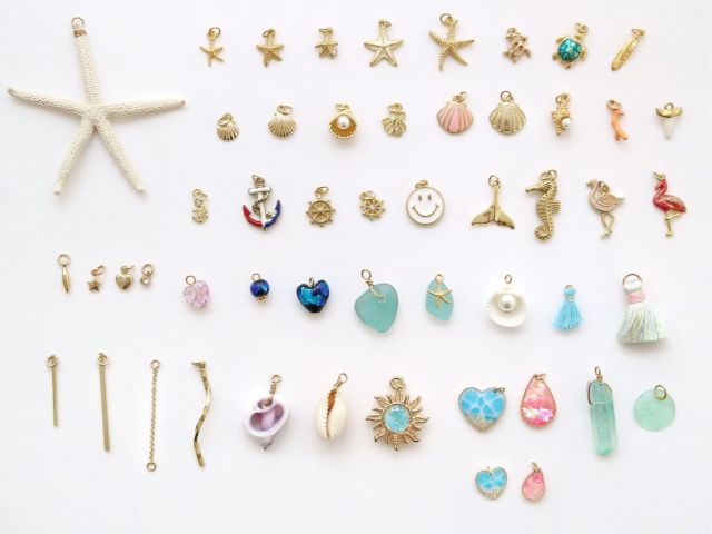 カラフルで可愛い天然石、ヒトデやイニシャルチャーム、
