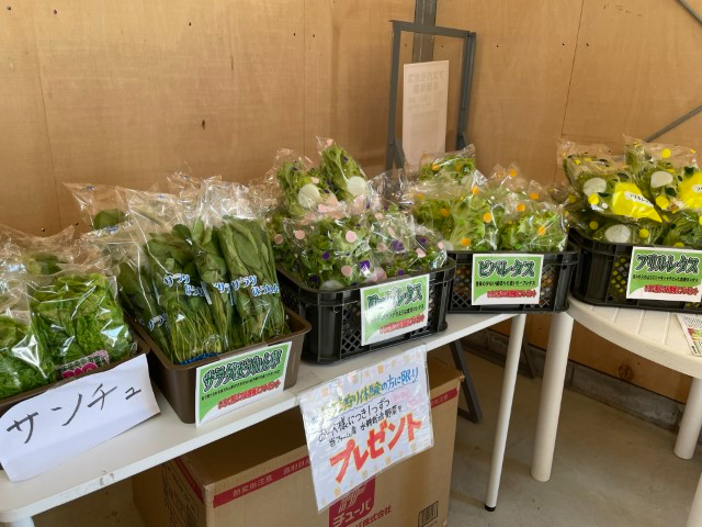 水耕(サラダ)野菜になります。種類については当日現地でお問い合わせください。