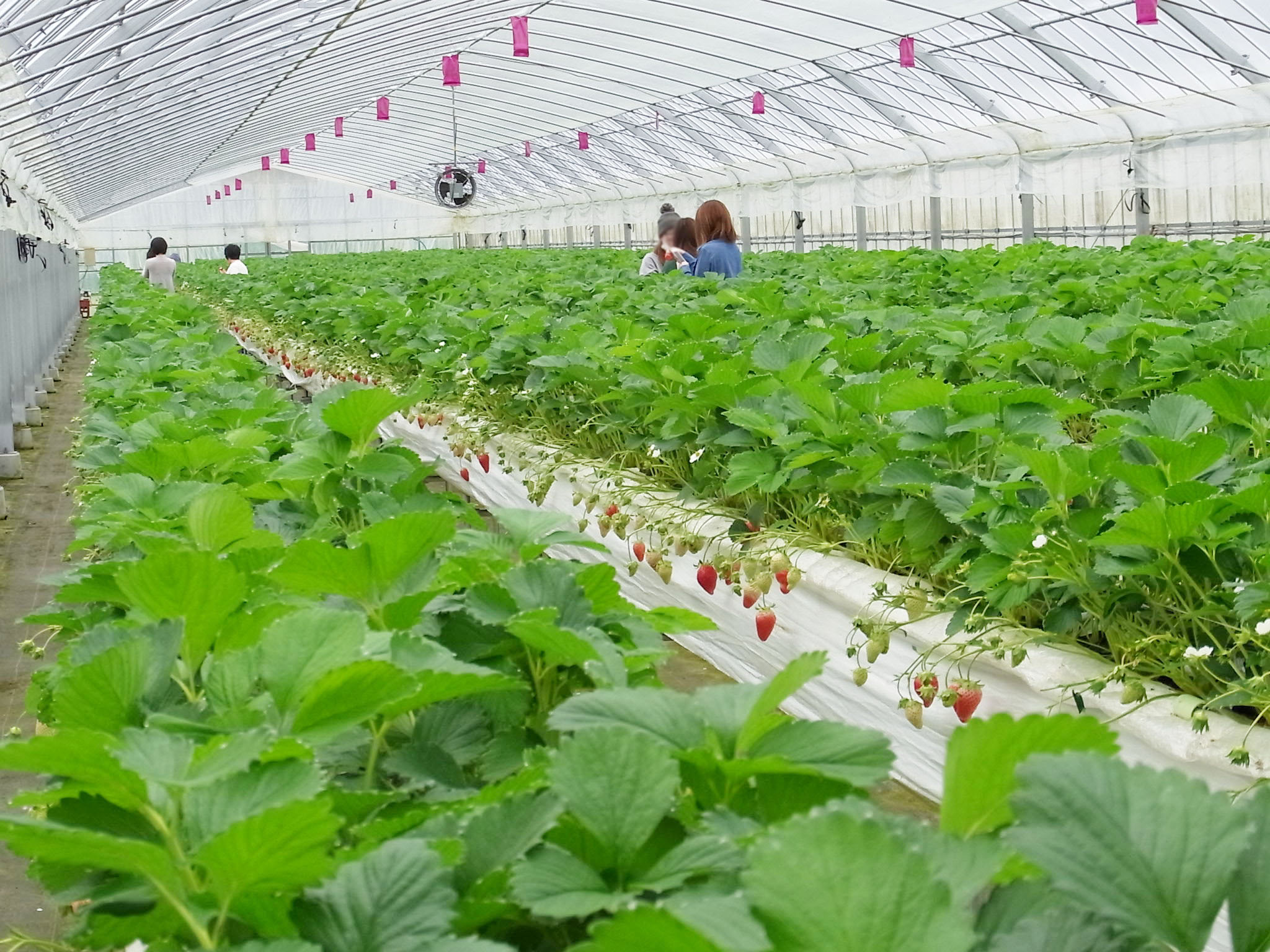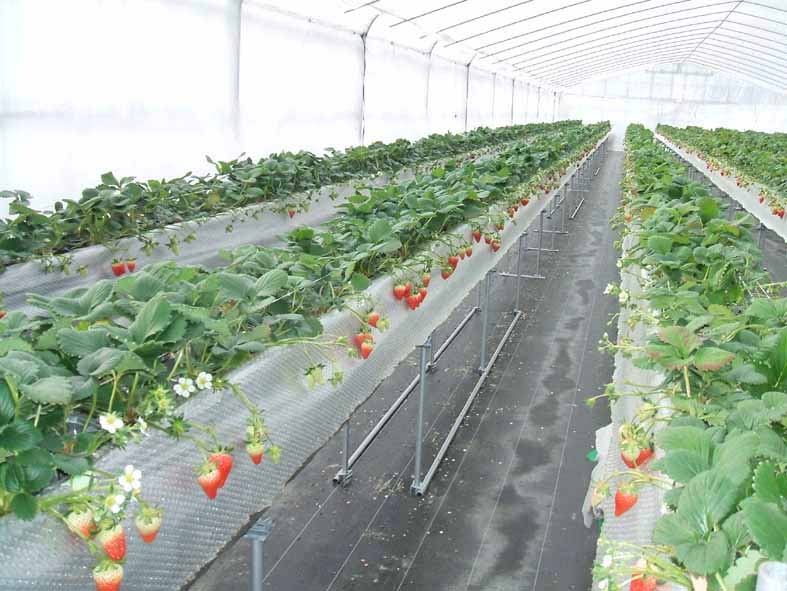 *高設栽培で大人も子供も楽々いちご狩りOK!