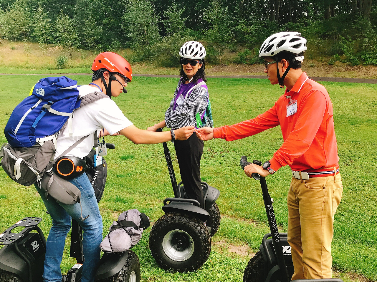 ツアーガイドについてツアーへ出発します。セグウェイ乗車体験と併せてその土地の魅力をお伝えするガイドトークをお楽しみください。
