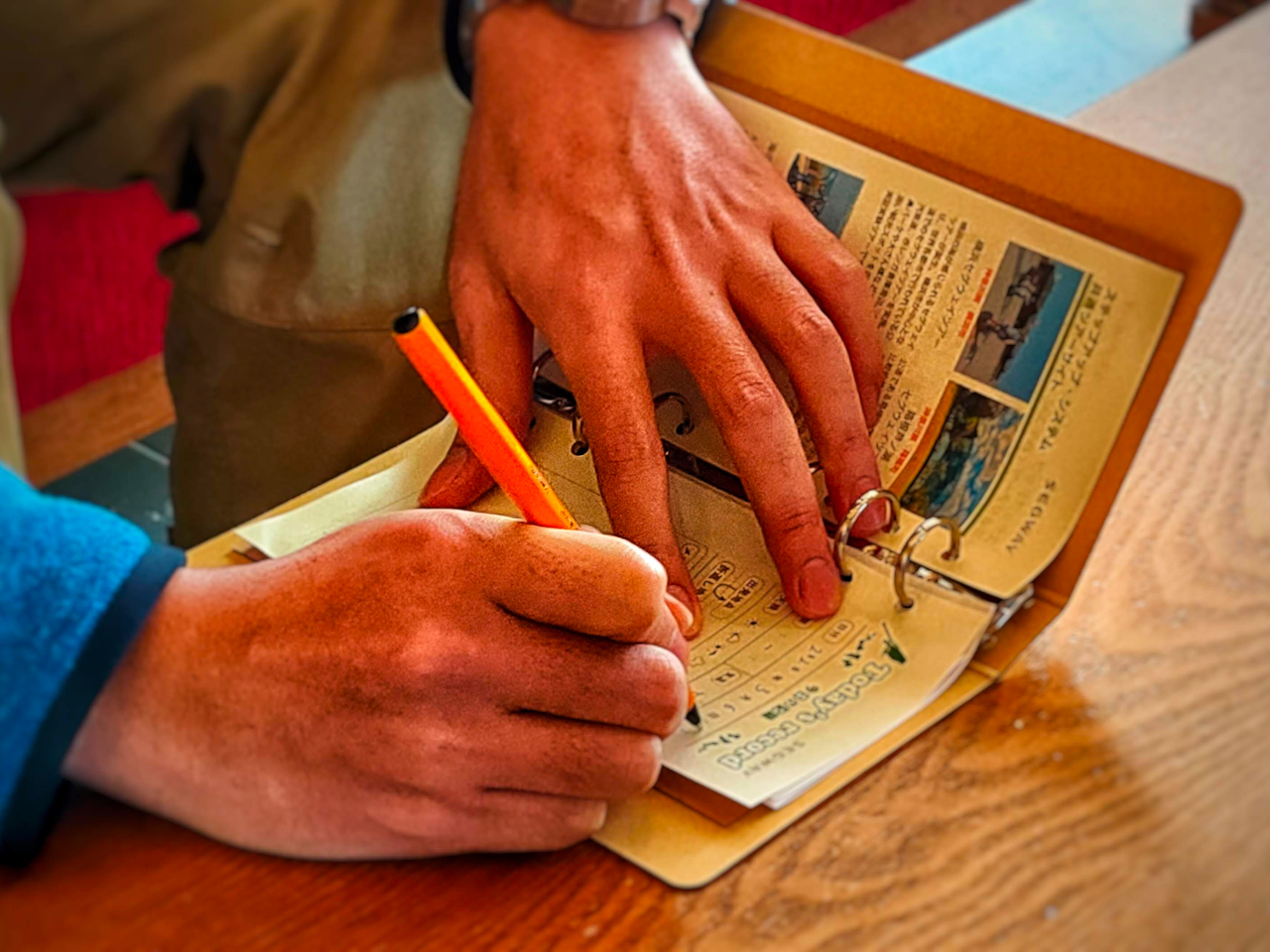 体験終了後、ログブックにツアーログを書いてツアーの思い出をお持ち帰りください。