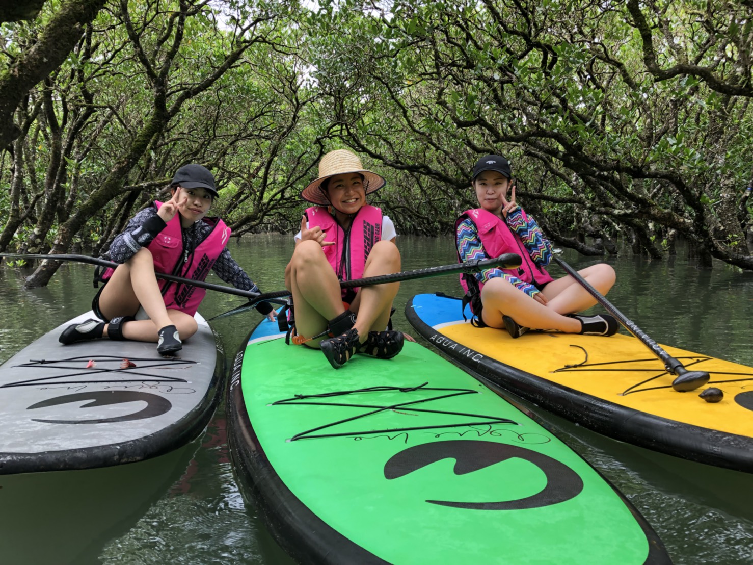 穏やかなマングローブをのんびりSUPで探検!疲れたら木々のトンネルでひと休み。寝転がって木と空を見上げることが出来るのもSUPならでは!マングローブが創り出す非日常的な空間を堪能できます♪