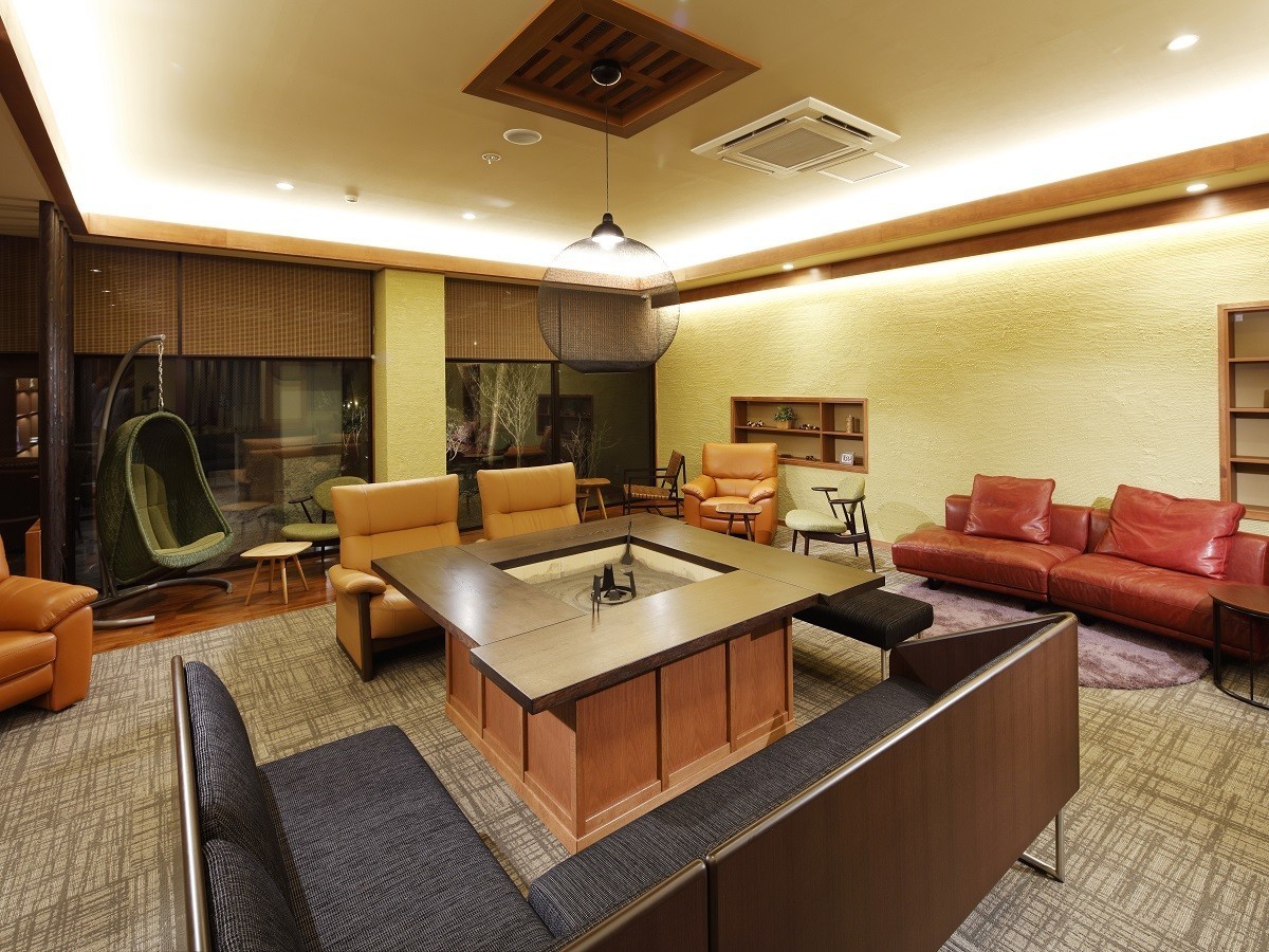 入浴後は、1F 囲炉裏を囲んだリビングラウンジにて、セルフスタイルのフリードリンクコーナー【函館の老舗「美鈴珈琲」のコーヒー・函館牛乳のソフトクリーム・スパークリングワイン】をご用意。ゆっくりとお楽しみ下さい。