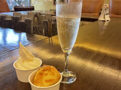 お風呂上がりに、ソフトクリーム、スパークリングワイン、コーヒーのサービスがあり、当日は朝食で人気のフレンチトーストのサービスもありました。
