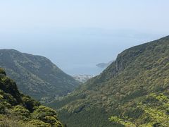 長崎の雲仙岳側から、山々の間に覗いている橘湾を見ることができるスポットです。