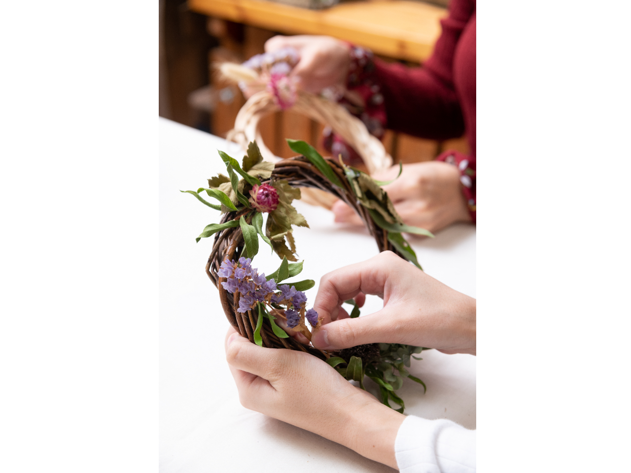 作り方は講師が細かく指導してくれるので、リース作りをしたことがない方でも安心してご参加頂けます。
