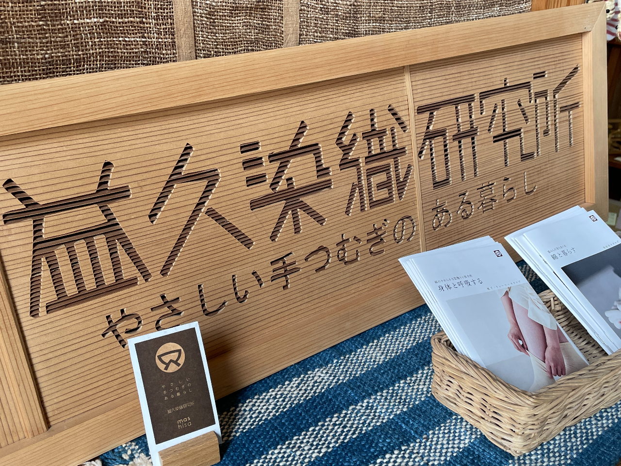 創業96年。“オーガニックコットン”という言葉が出来る前から、「今までに一度も農薬や化学飼料を使ったことが無い土地で栽培されたコットン」を取り扱い、手紡ぎ・天然染料で素材を作り、人と環境に寄りそう商品を開発し、つくってきた「益久染織研究所」で、昔ながらの木製の機織り機を使ってストールづくり。