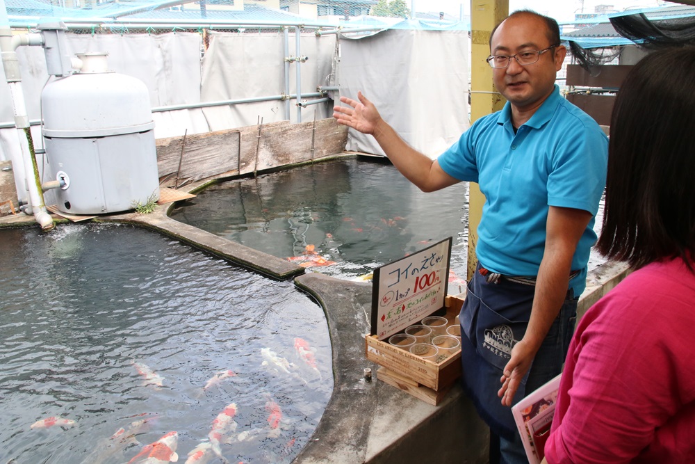 観賞魚専門店の見学ツアーです。自家生産の金魚は品評会で入賞したことも。知識豊富なスタッフが店内の魚について解説してくれるので、帰るころにはあなたも金魚通!?金魚すくいや鯉のエサやりも実施しています。