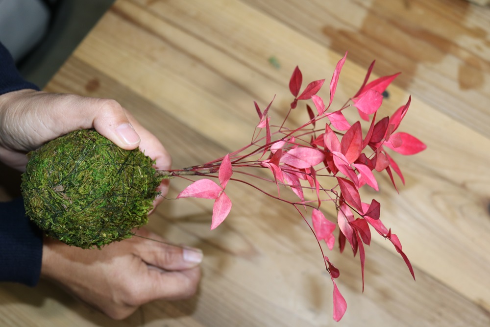 斑鳩の植物をふんだんに用いたオリジナルの苔玉づくりを体験することができます。