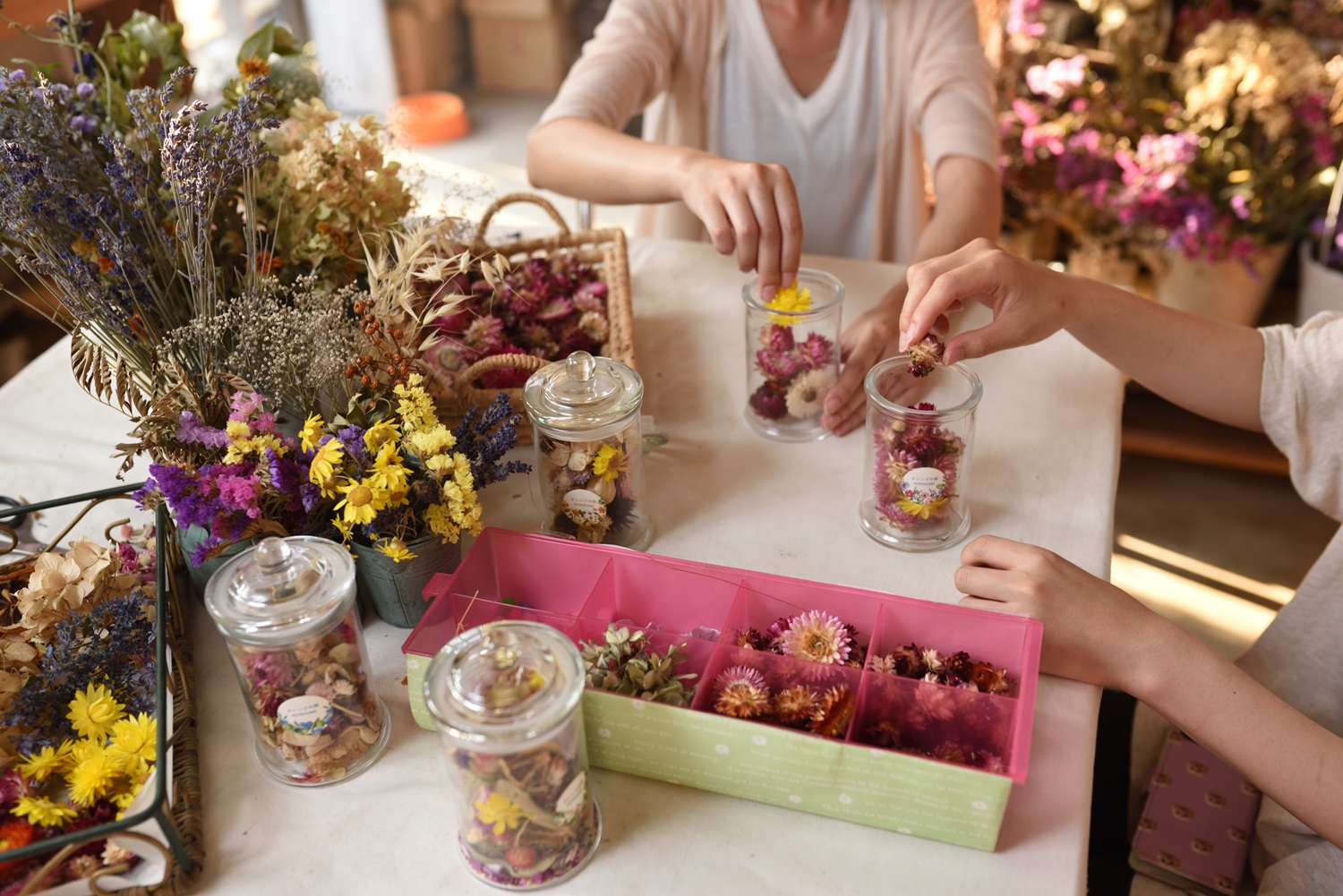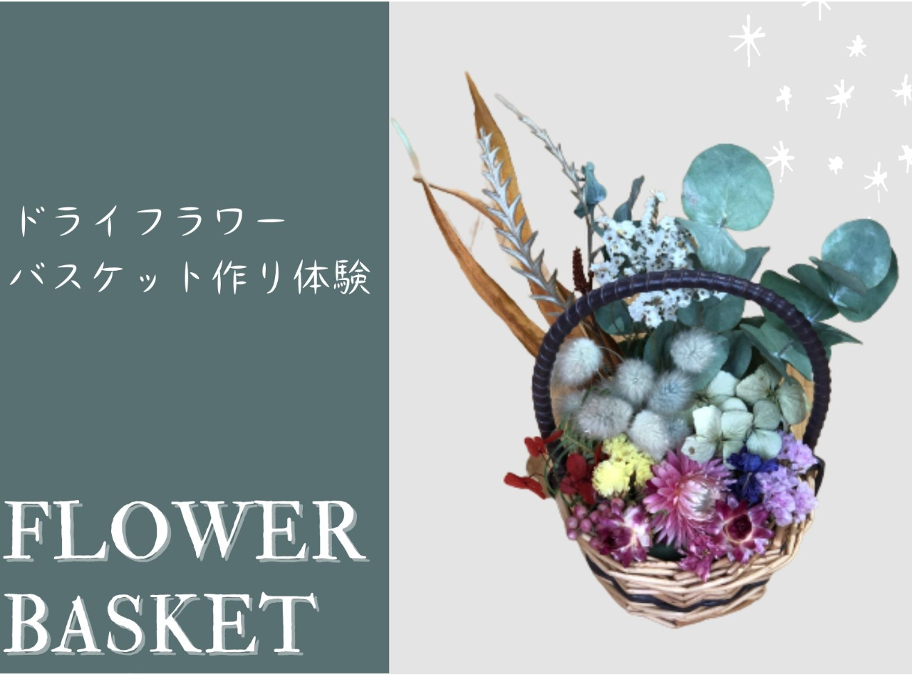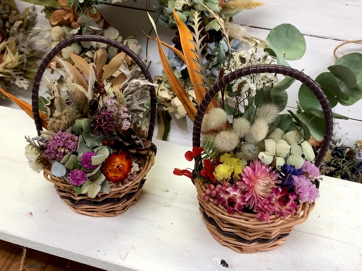いかるがの里で、かわいいドライフラワーのミニバスケットを作ってみませんか?