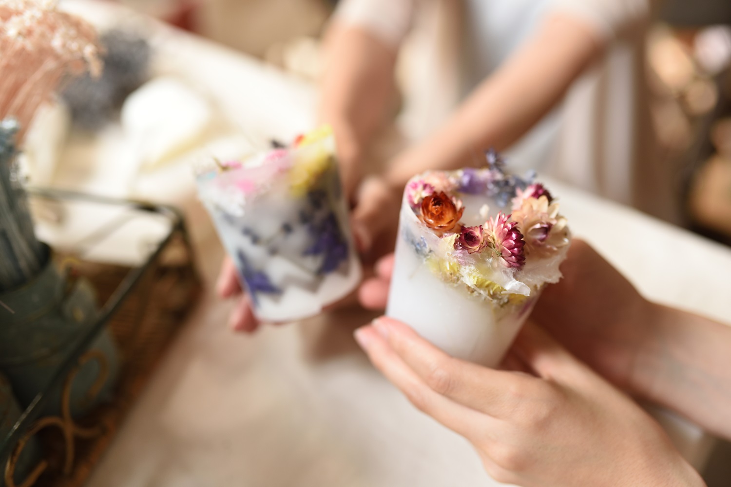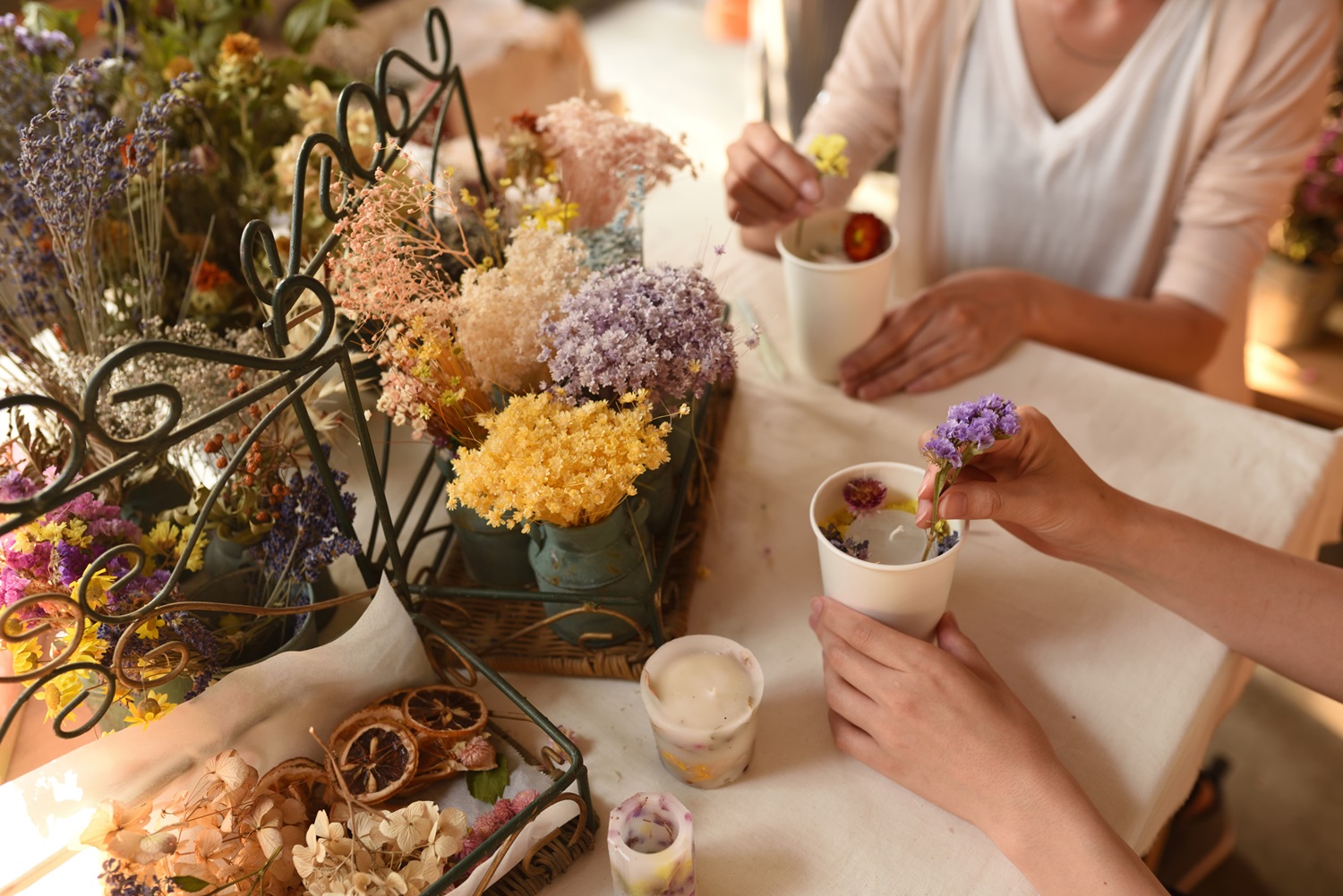 いかるがの里で育った花のドライフラワーで作るキャンドルです。