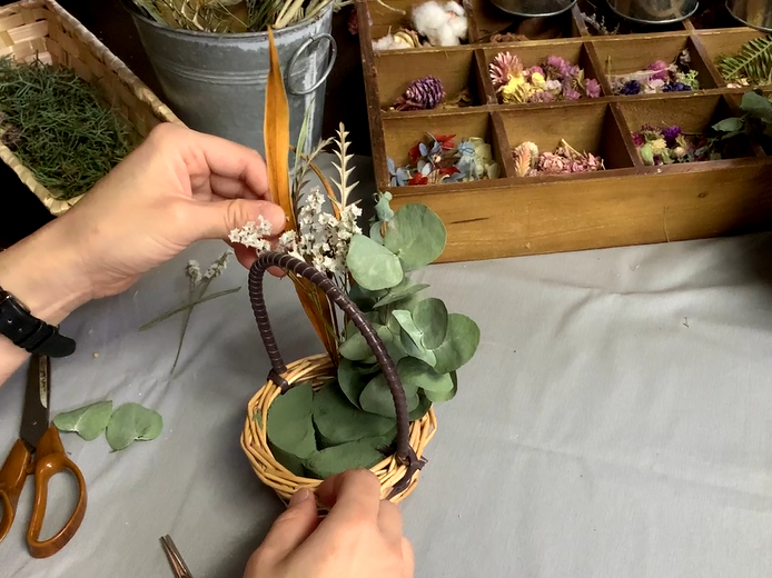 【奈良・斑鳩】あなたならどう作る?ドライフラワーミニバスケット作り体験!