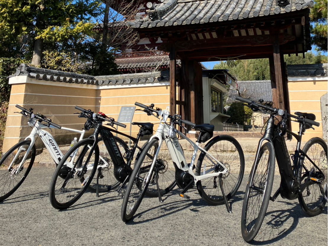 本格的なE-バイクで長距離も楽々♪世界文化遺産「法隆寺」の近くの店舗「奈良斑鳩ツーリズムWaikaru」から奈良市内や信貴山、明日香へのサイクリングも楽しめる!無料駐車場あり。