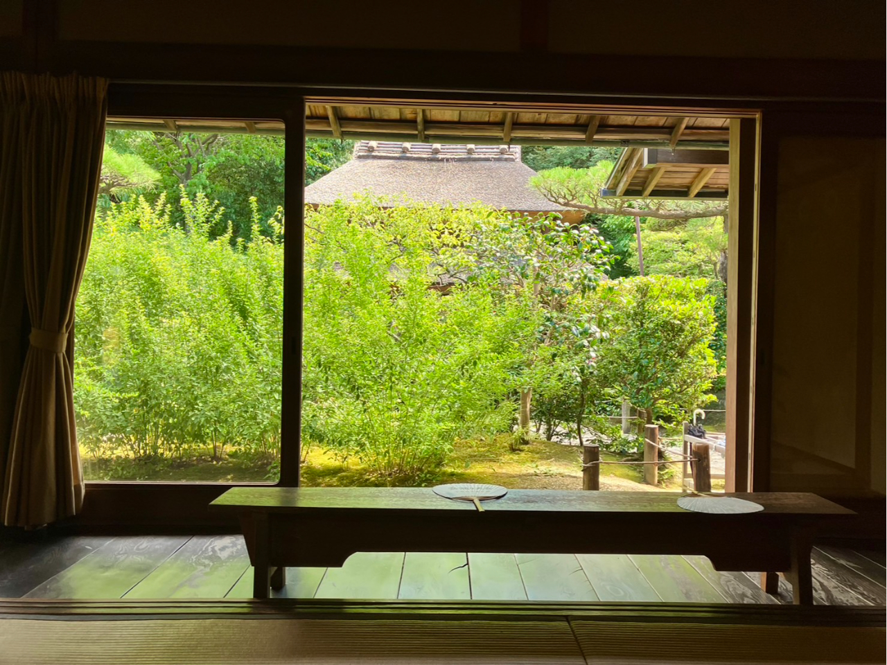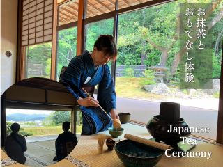 江戸時代末期に建立された茶室で、本格的なお茶を楽しんでいただけるプランです。歴史のある茶室でいただくお茶は格別!茶室には掛軸や水指が備えられ、趣深さと彩りを添えます。庭園を眺めれば四季折々の風景が!