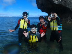 アラ還4人でシュノーケリング体験しました。初心者が殆どで余り海にも慣れていない人もいたのですが、沖縄の海中を見て貰いたくて口コミを参考に探していた所「Nature Guide Double Rainbow」さんを見つけました。余りにもお値段がお安いので正直不安もありました。が要らぬ心配。反対に至れり尽くせりでこのお値段で大丈夫なの??と思いました。残念ながら海風と波の状況で「青の洞窟」は体験できませんでしたが、近場の内海に案内して頂きシュノーケリングを楽しめました。海水の透明度は素晴しく綺麗で魚達も沢山見る事が出来ました。珍しい魚や生き物がいる時などはシューノーケリングを楽しみながら、海中生物の名前や名前の由来など沢山説明して頂きました。また、私達のグループだけを対応して頂いていたので、ゆっくりまったり海中散歩が出来ました。体験終了後は体にかける為に温かいお湯の入ったペットボトルを用意してくださったり、トラックの中の手作りシャワーや、髪や顔などのケアの事まで気配り頂き有り難かったです。それから、写真や動画も沢山撮って頂いたので、当面はその写真や動画を見ながら沖縄の海の思い出に浸ることができます。楽しい体験有難うございました。今回行けなかった「青の洞窟」は次回に!! その時はお願いしようと思っています。