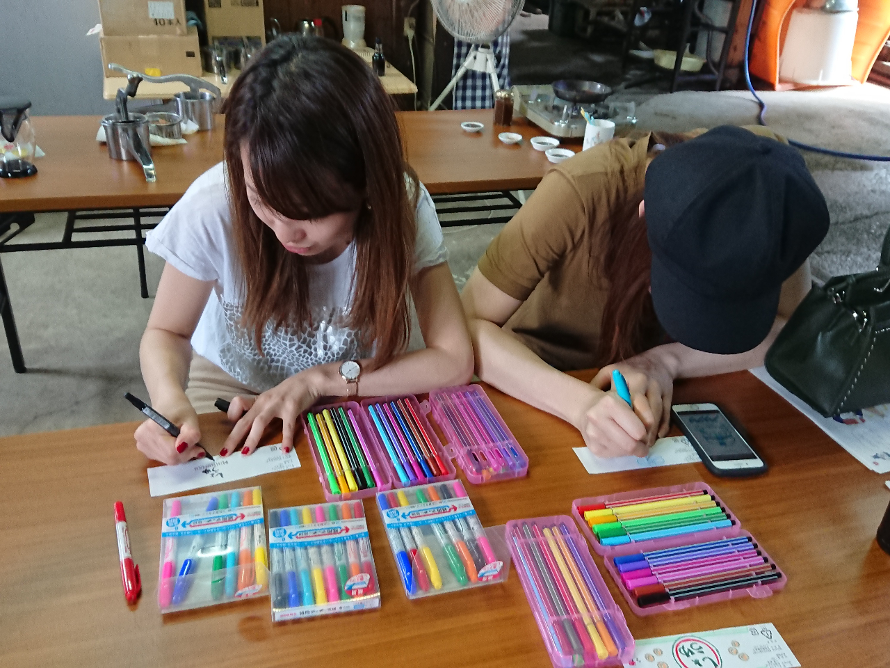 最後に自分で搾った醤油にマイラベルを手描きで作成しお持ち帰りいただけます。