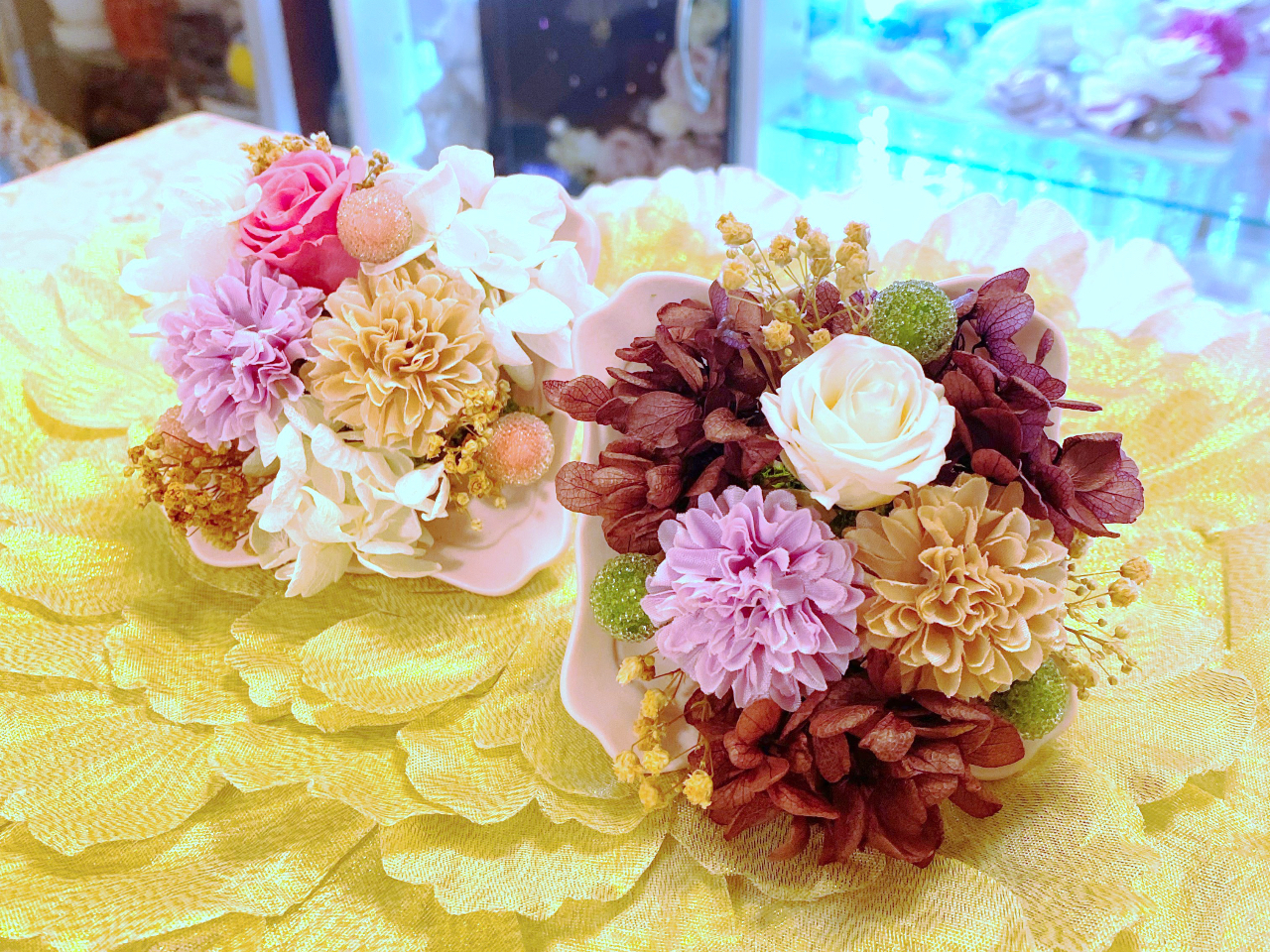 お好きな色合いで、綺麗なプリザーブドフラワーアレンジメントがつくれます。