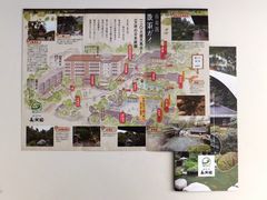 長楽園の敷地は、およそ1万坪の広さだと説明されています。正方形にしたら一辺の長さは300m余りということになります。その大半が、庭園・大露天風呂に使われています。ロビーには、庭園の「散策ガイド」が置いてありました。庭園を備えた宿は珍しくありませんが、これほど広くて見事な庭園があって、しかも案内マップまで用意されている宿は他にありません。