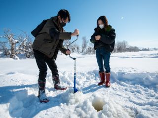・新千歳空港と札幌の中間地点の南空知で、氷上ワカサギ釣りにチャレンジ。