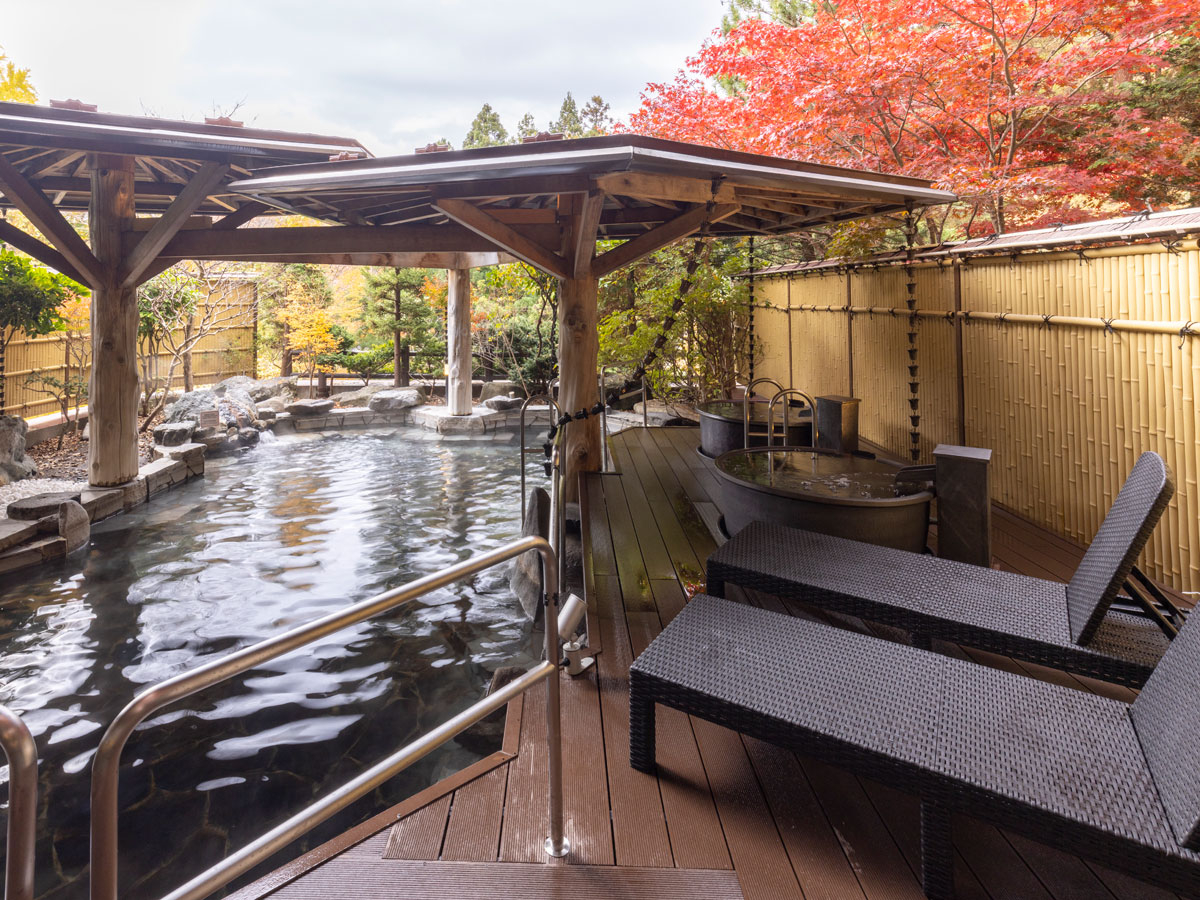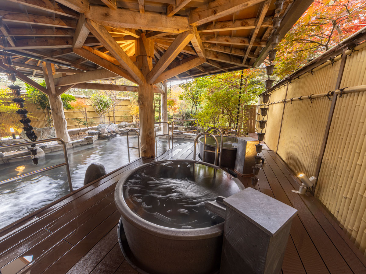 ◆岩露天風呂からの景色は開放感に溢れ、季節の移ろいを全身で感じることができます。
