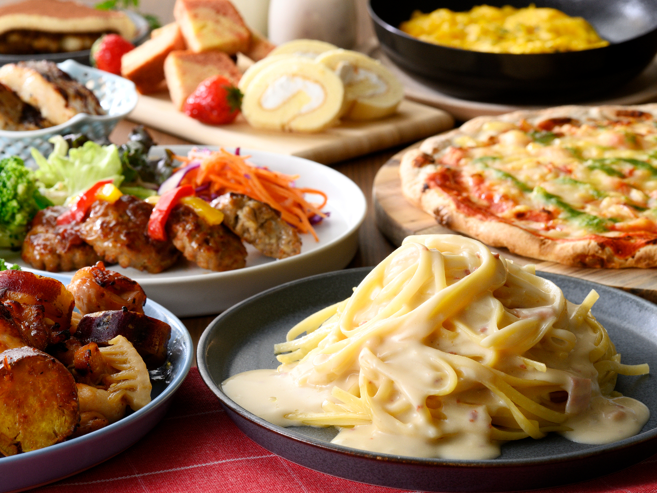 明るくカジュアルな雰囲気のレストラン♪ステーキ食べ放題・握り寿司食べ放題と点心セット食べ放題、多種多彩なビュッフェコースのご案内です。