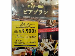 ◇◇ディナーブッフェ40種食べ放題90分+アルコール飲み放題120分【食べ飲み放題Aコース】