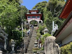 長い石段を上ると,朱塗りの竜宮城のような鐘楼門があります。「仏の灯台」と言われているそうです。鐘の所からの大海原の眺めがよかったですから,海からも見えるでしょう。