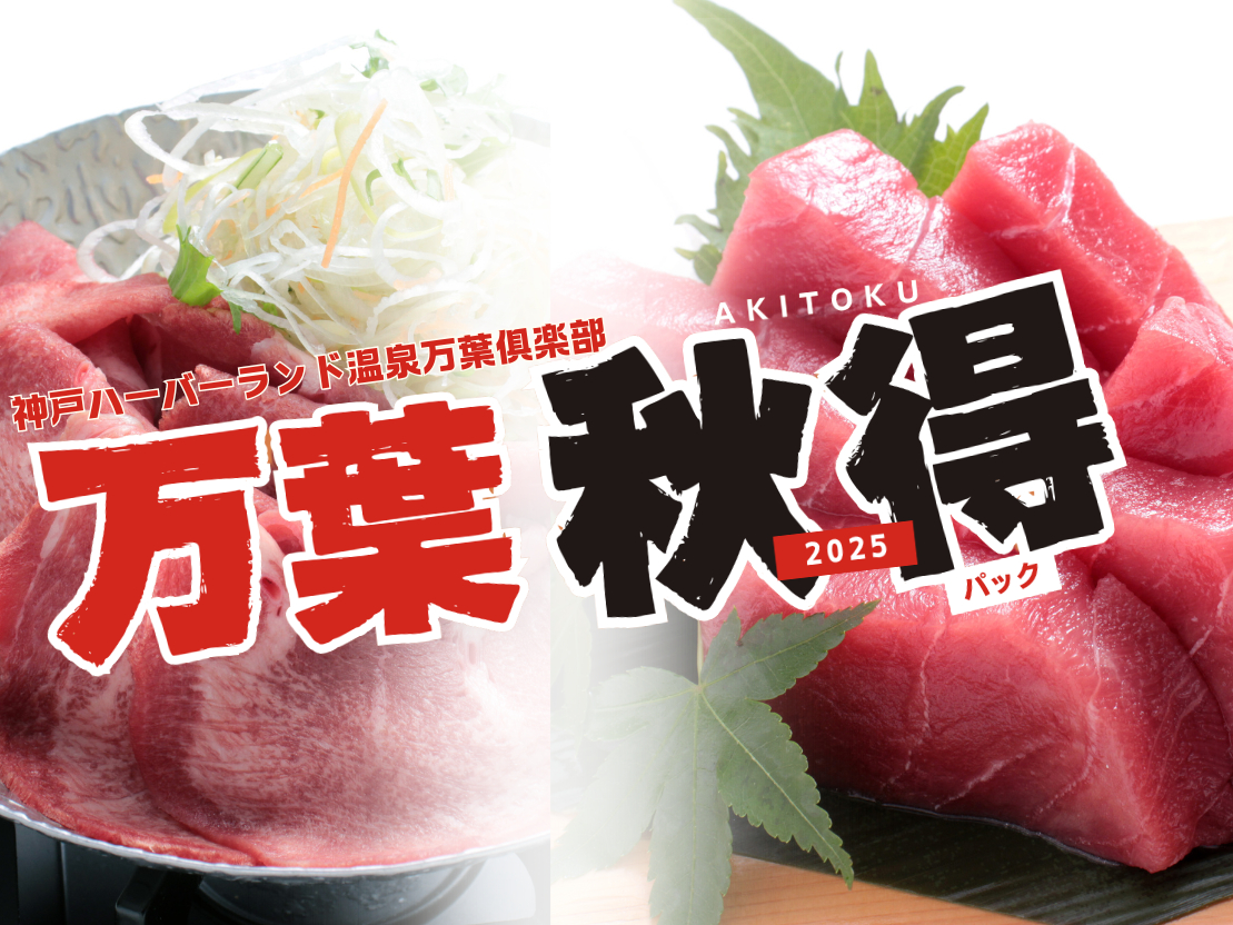 万葉秋得パック(入館+深夜料金+チェックアウト11時まで+選べる特別メニュー+翌日の朝食バイキング)