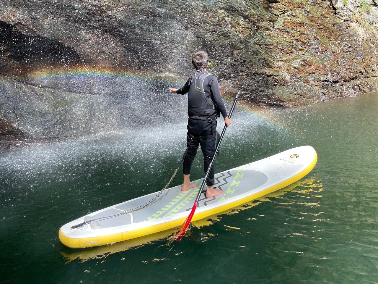 那須塩原の塩原温泉エリアにある湖「もみじ谷」と渓谷美しい「箒川」で開催。もみじ谷は渓谷クルージングが楽しめる穏やかな湖。箒川は岩からの飛び込みや滝遊びなど夏の遊び満載の川SUP体験です。4月〜6月もみじ谷、6月〜10月箒川、10月〜11月もみじ谷と、季節によってフィールドが変わります。
