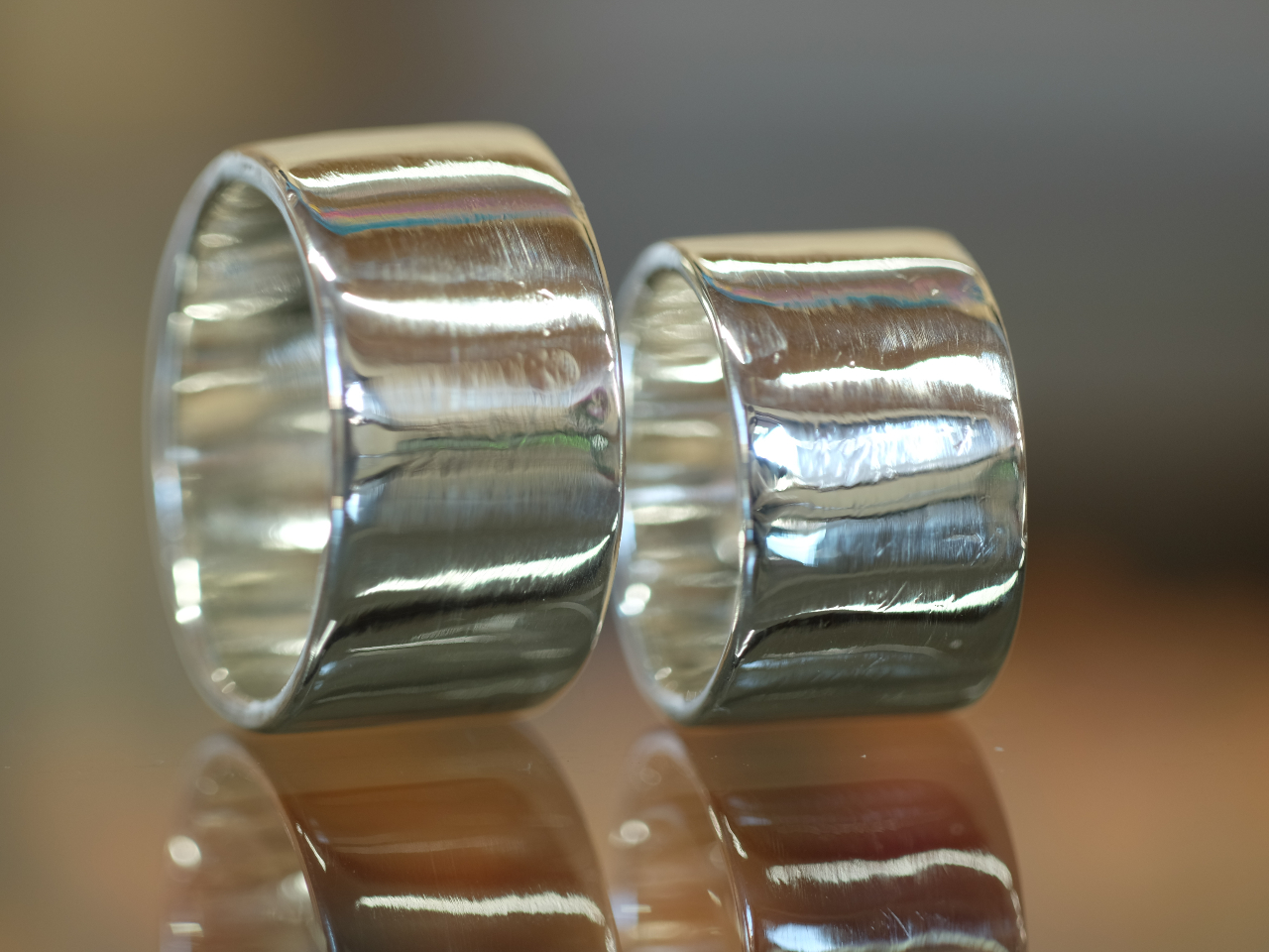 完成した指輪は、理想通り(と言うより想像以上)の指輪に仕上がっており、よくある安っぽいシルバーでなく、持参していたティファニーのシルバーリングと同じ輝きで大満足でした。